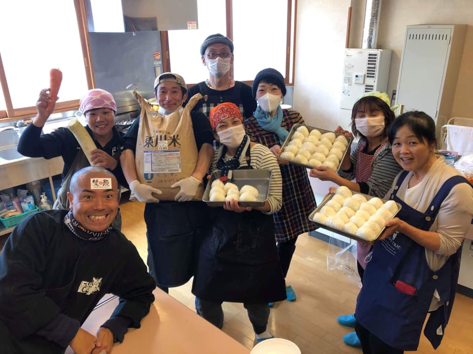 また、小布施町よりも広範囲かつ甚大な被害を受けた対岸エリアで私設ボランティアを行なっている団体にも塩むすびとフルーツを提供。