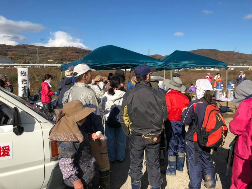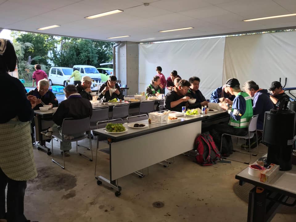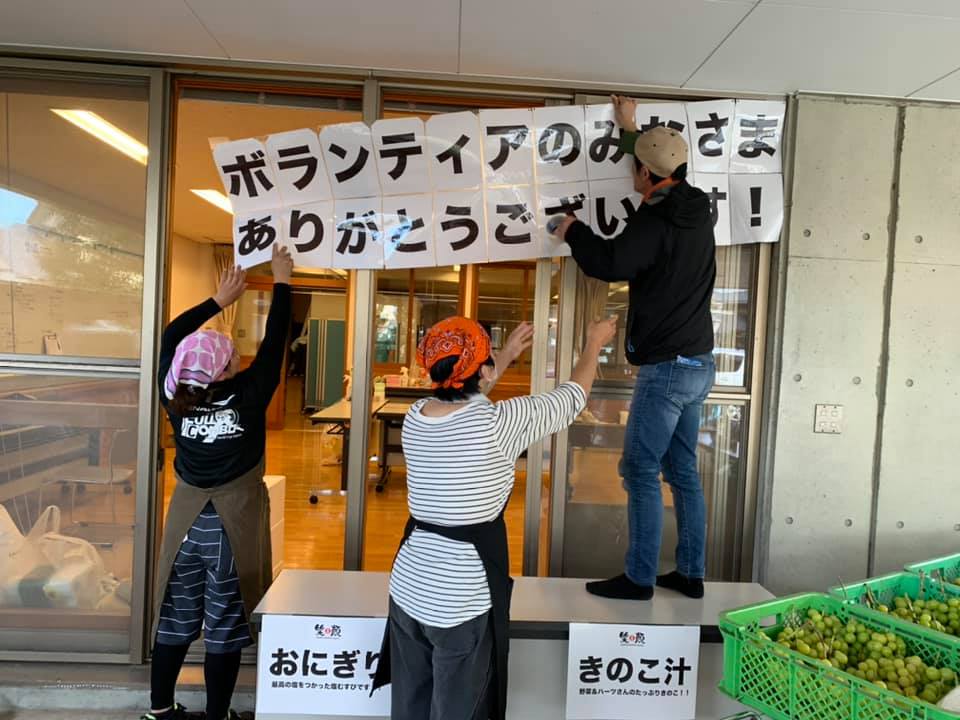 丁度そのタイミングで、小布施町のボランティアセンター(小布施町社会福祉協議会)へ行くと、災害ボランティアに参加された皆さんとお会いしました。泥だらけになり、家財道具の運び出しや、泥排出など毎日本当に多くの皆さまが参加してくださっていました。汚れた長靴や道具を洗い片付けをして帰宅。お帰りになる背中を見て、この災害ボランティアにお越しになられる皆さんあっての復興だ!ボランティアの皆さんが継続的に参加していただけるためには、もっとボランティアの皆さまへのヘアが必要だ。そう思い、ボランティアのためのボランティアとして炊き出しを行う事になりました。