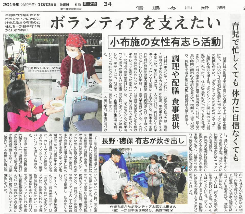 小布施町のボランティアセンターは、28日で一旦解除となりますのでそれまで全力でサポートさせて頂きます。