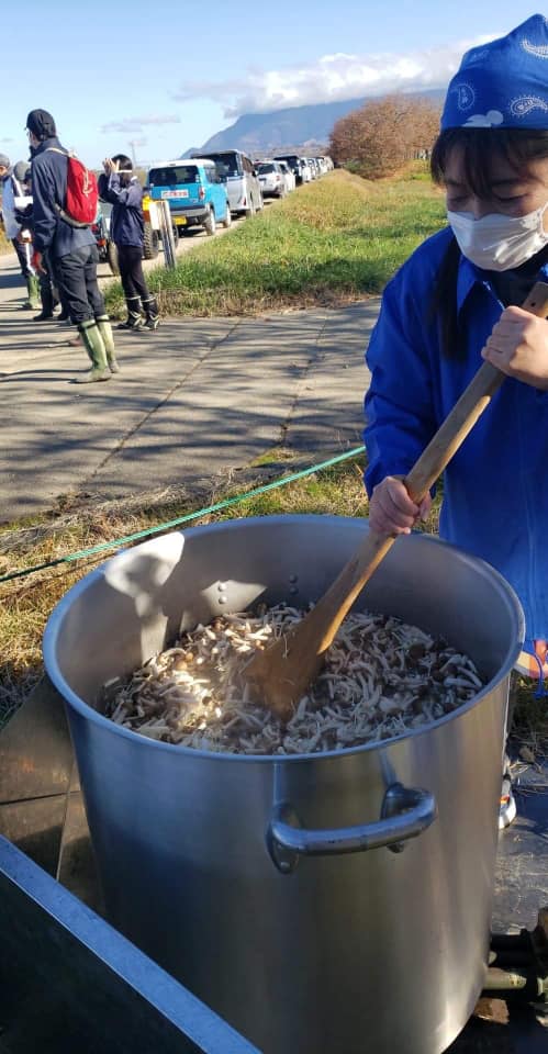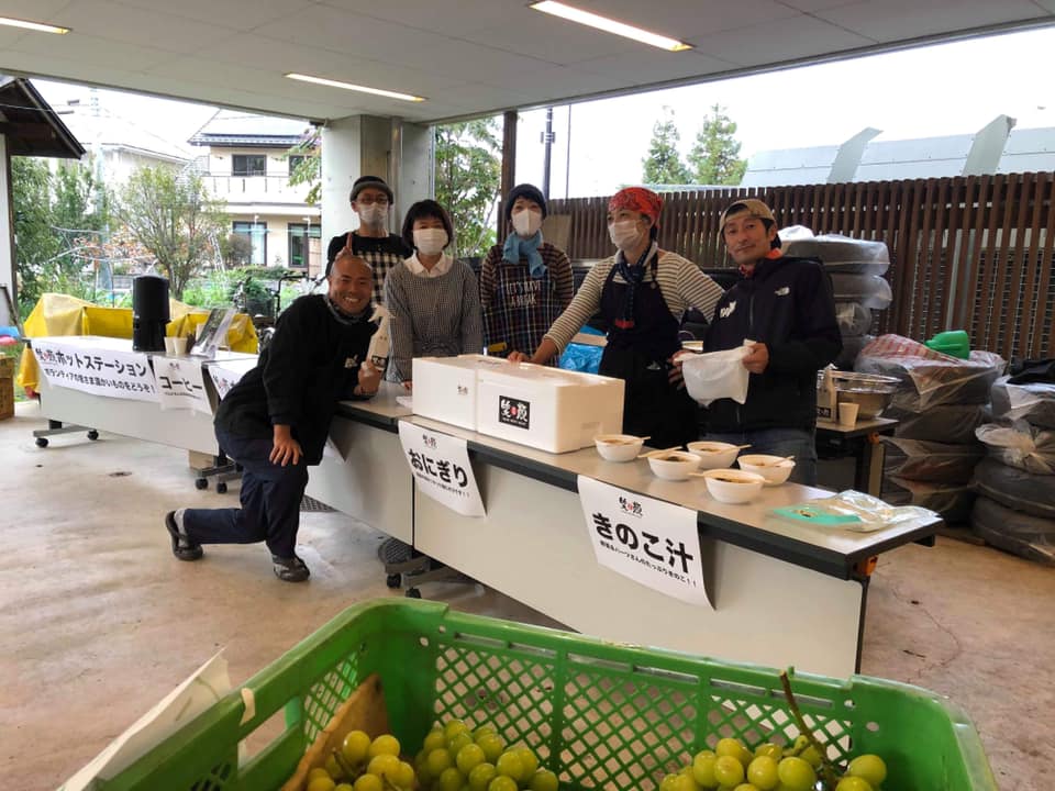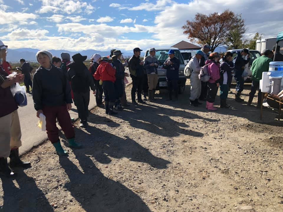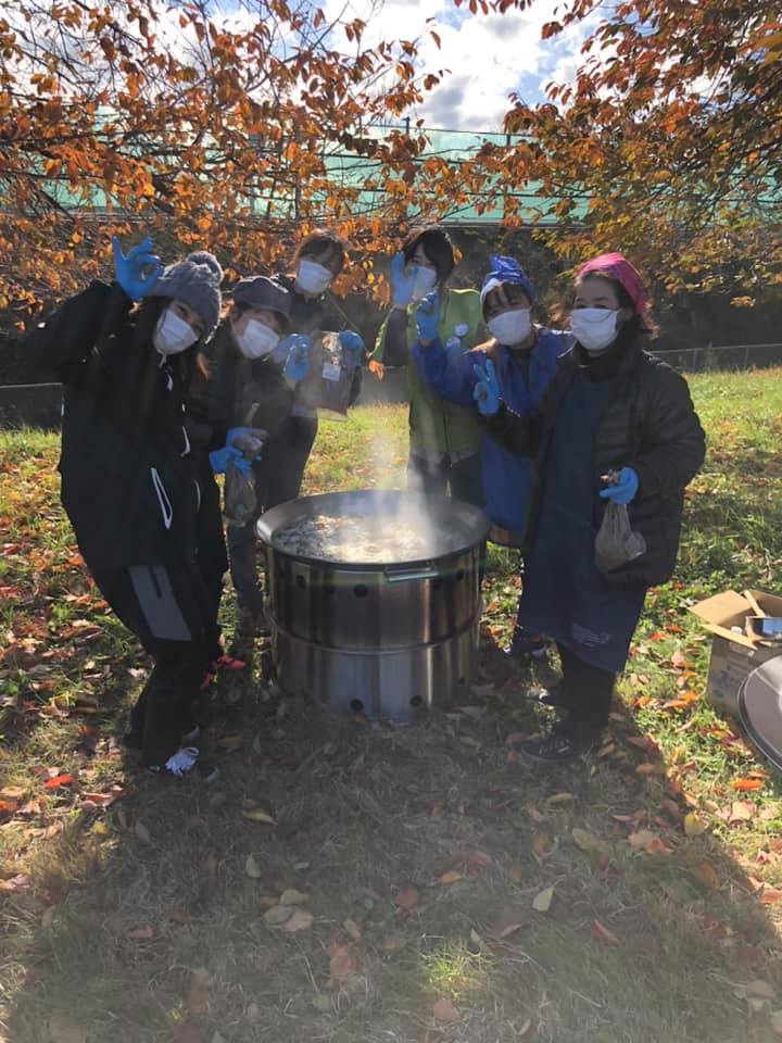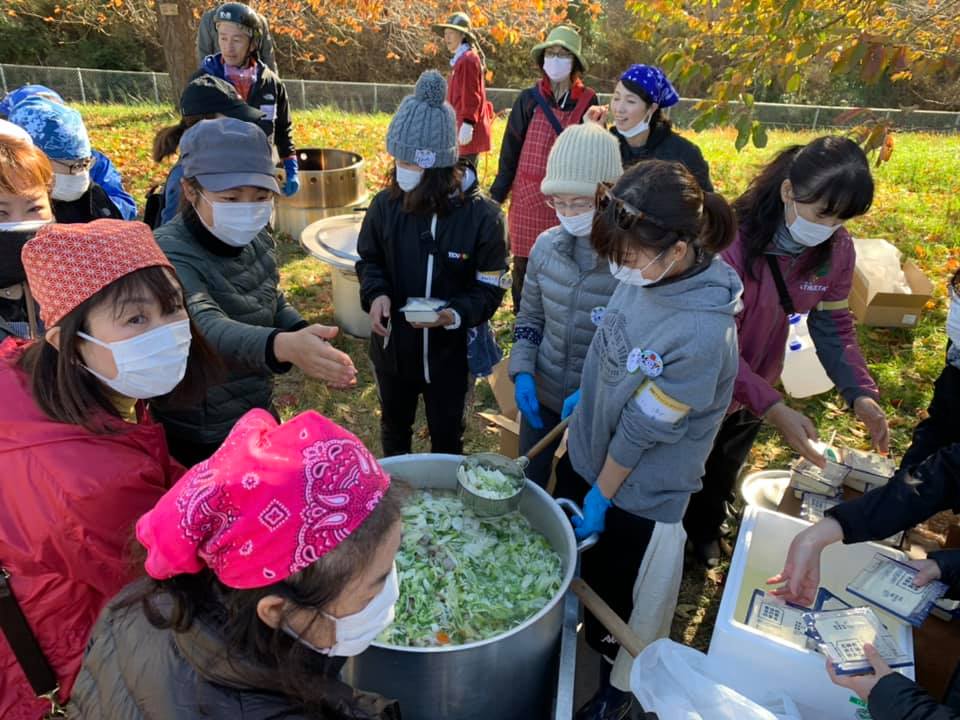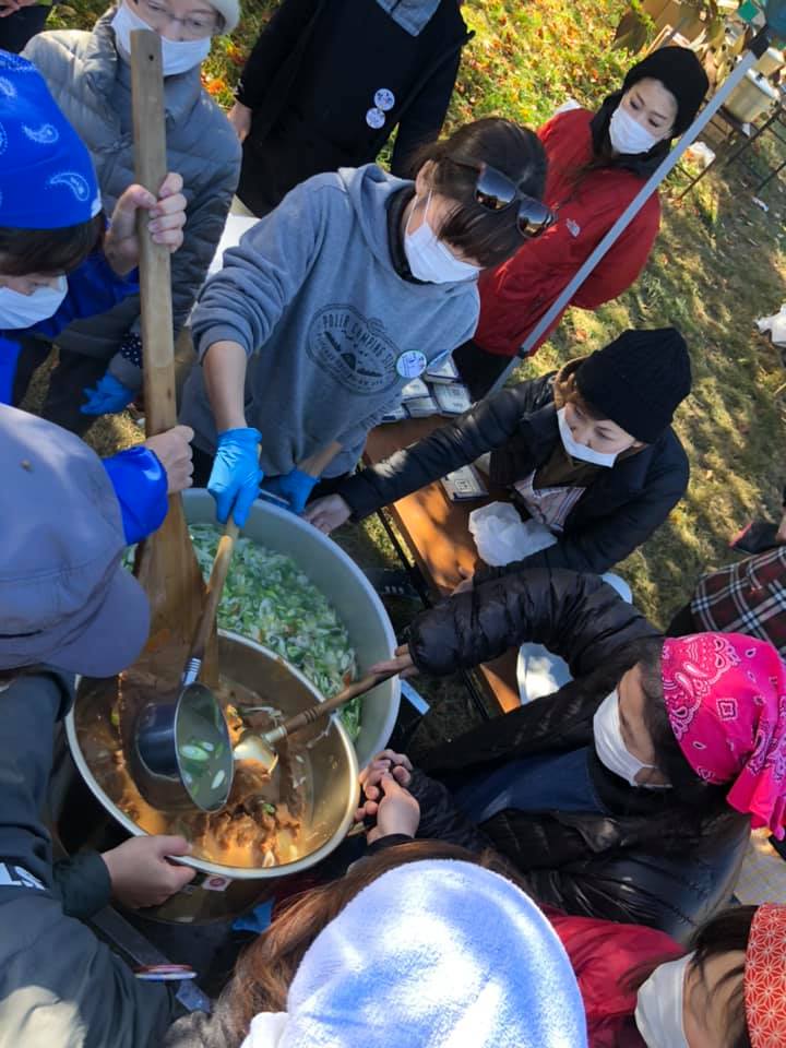 2019年11月23日小布施町で行われた農業ボランティア活動。その活動に参加された皆さんに感謝の気持ちを伝えようと、日本笑顔プロジェクトでは炊き出しを行いました。