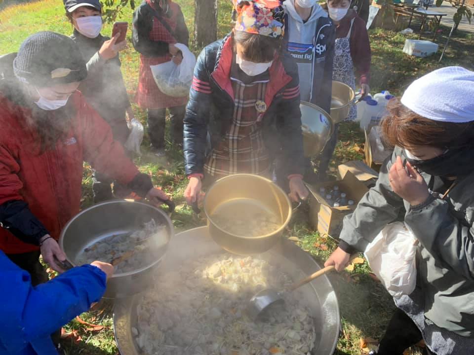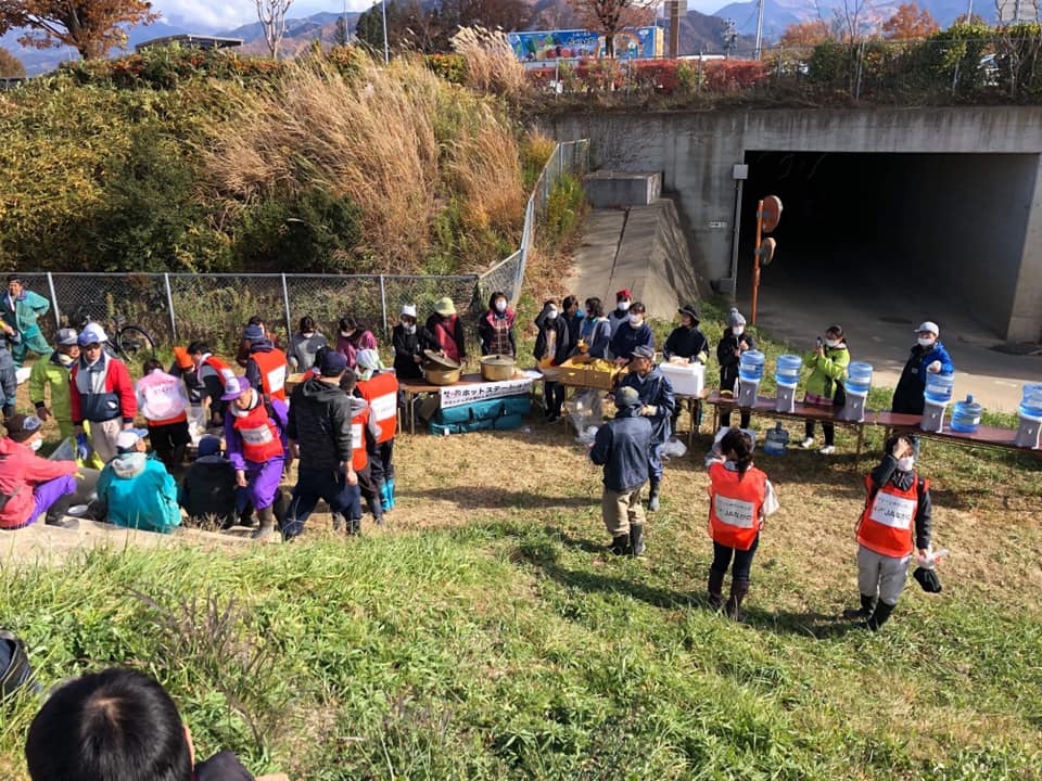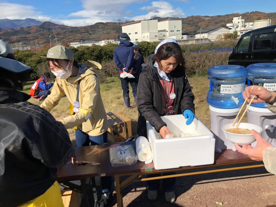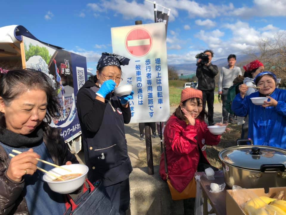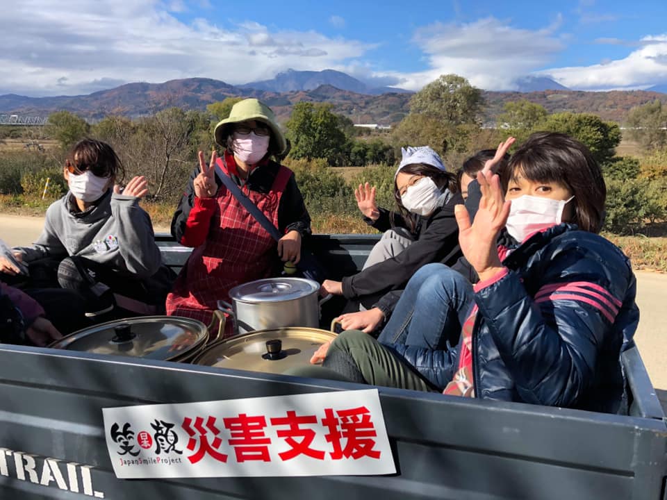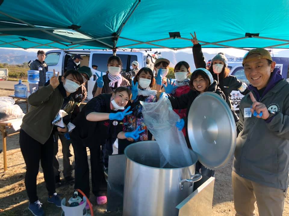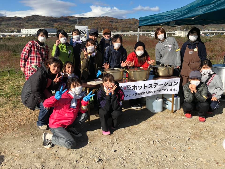 2019年11月23日小布施町で行われた農業ボランティア活動。その活動に参加された皆さんに感謝の気持ちを伝えようと、日本笑顔プロジェクトでは炊き出しを行いました。