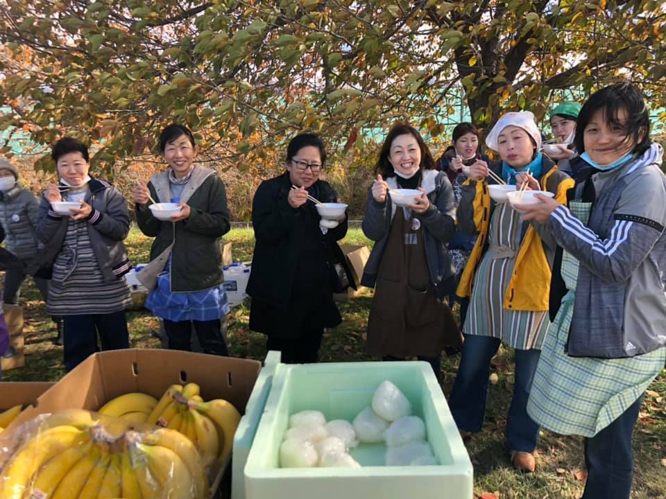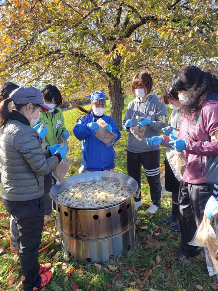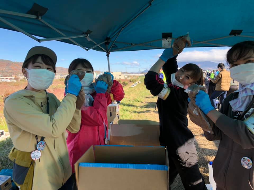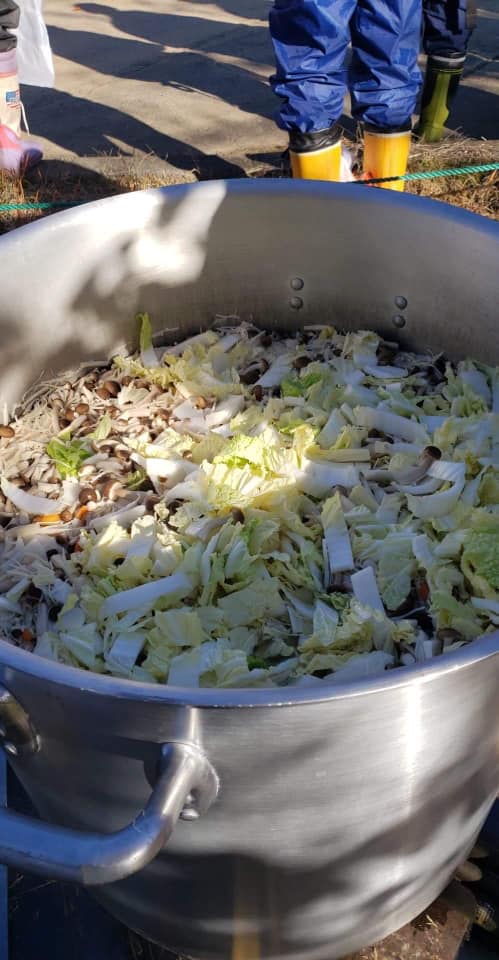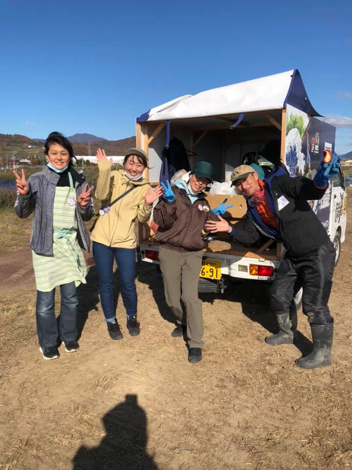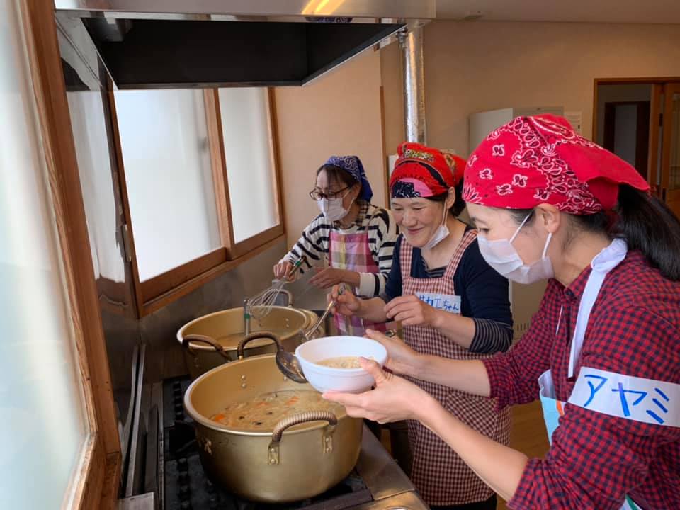 2019年11月23日小布施町で行われた農業ボランティア活動。その活動に参加された皆さんに感謝の気持ちを伝えようと、日本笑顔プロジェクトでは炊き出しを行いました。