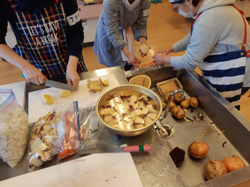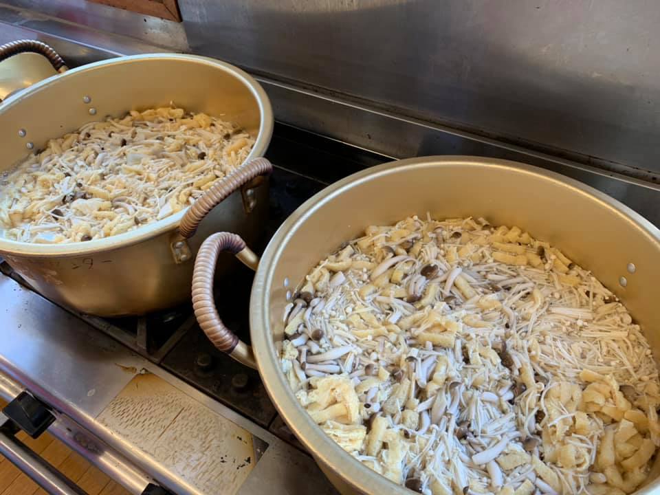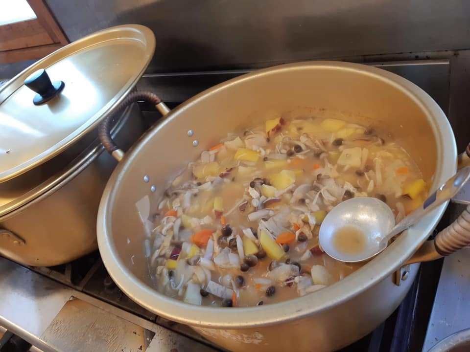 昨日の新聞掲載を見て、新たに参加してくださった方もいて仲間が増えました。今日のキノコ汁にはエノキとしめじに加えナメコも加わりどんどんクオリティー上がります。