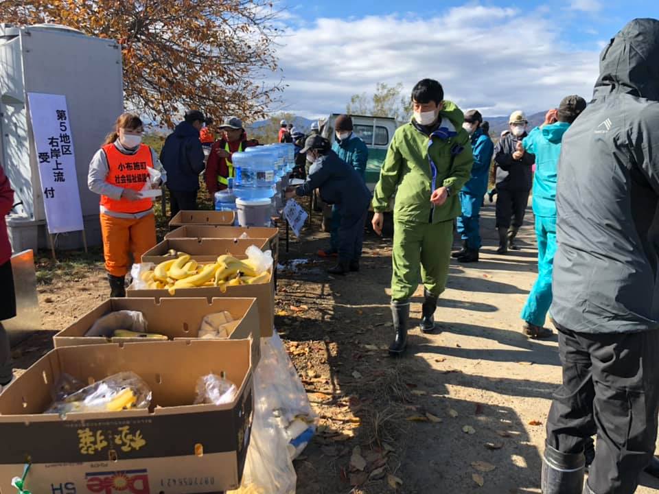 白菜(屋台ふぁーむ小林さん)、大根(北村尚子さん、篠塚明美さん、高野薫さん)、人参(永田あかりさん)、ネギ(塩瀬春香さん、高野薫さん)、きのこ(株式会社ハーツさん)、豆腐(茶房まめ家さん)、ビタミンちくわ(株式会社スギヨさん:富山県)、秋刀魚すり身(ワイケイ水産株式会社さん:宮城県)、味噌(土鍋ラーメンたけさん&穀平味噌さん)、ガスコンロ&ガスボンベ&日赤鍋&水ボトル等々(北信ガス株式会社さん)、寸胴&鍋(とん太郎さん、小布施町振興公社さん、松の実自治会さん、中央自治会さん、大島自治会さん、その他多数個人)、風除アルミ板(株式会社ワクイさん)、ウォーターサーバー(株式会社ワールドエコさん)、バナナ(ボランティアにお越しの方)、ATVバギー(株式会社RSS高喜屋さん:新潟県、浄光寺)、ATV積載運搬(原田屋自動車販売)