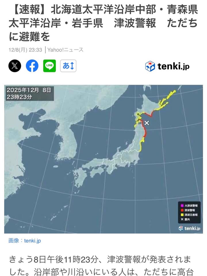 沿岸地域の皆さま、ただちに命を守るための避難行動を取ってください。