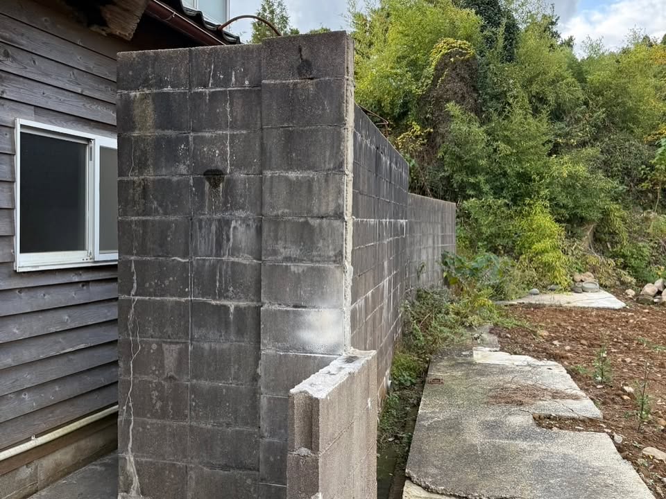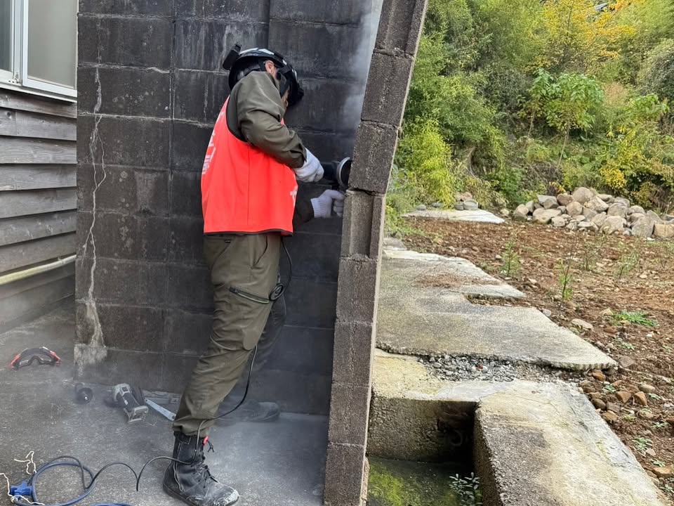 地震で外壁が落ちてしまった蔵で、土壁が出てしまっている所、地震でブロック塀が傾いてしまった所、仮置き場での活動でした。