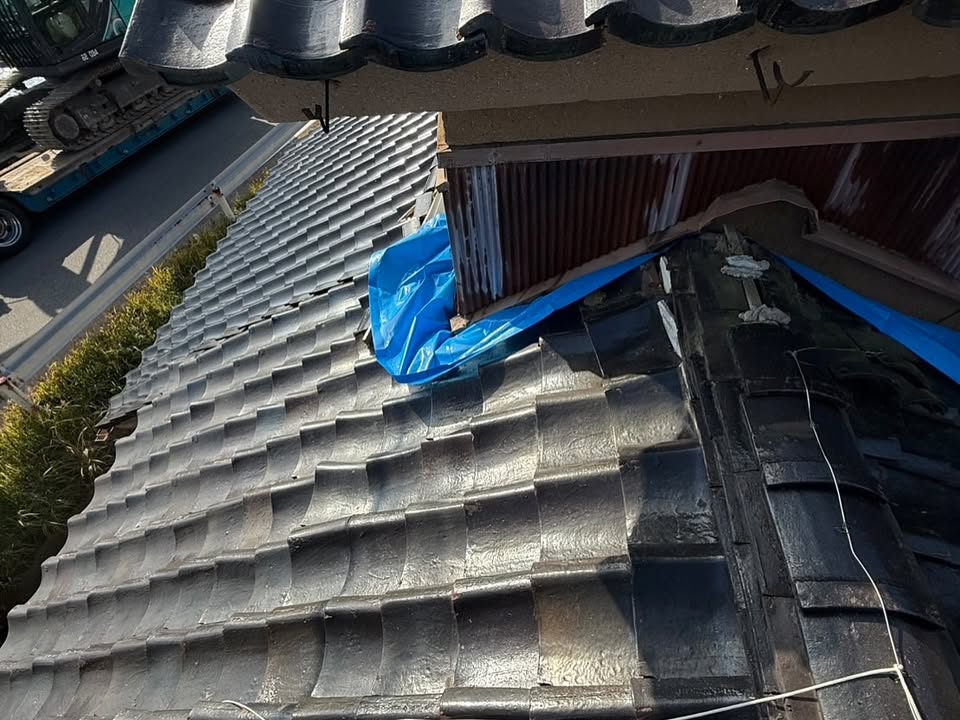 隣に建つ母屋は2階部分が座屈しており、また周囲の建物は解体され、空き地が目立っておりました。