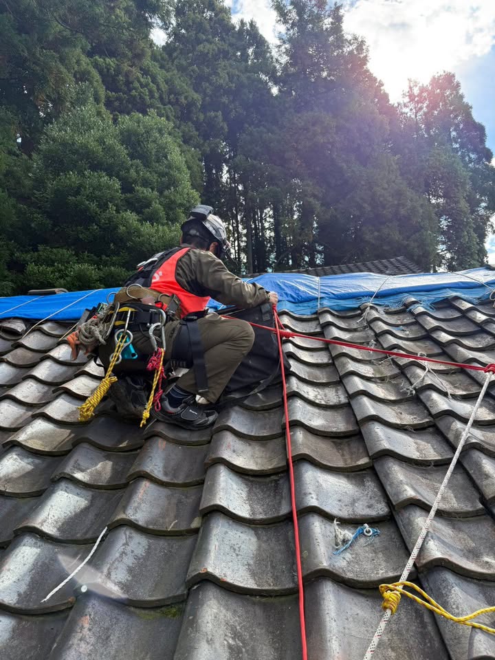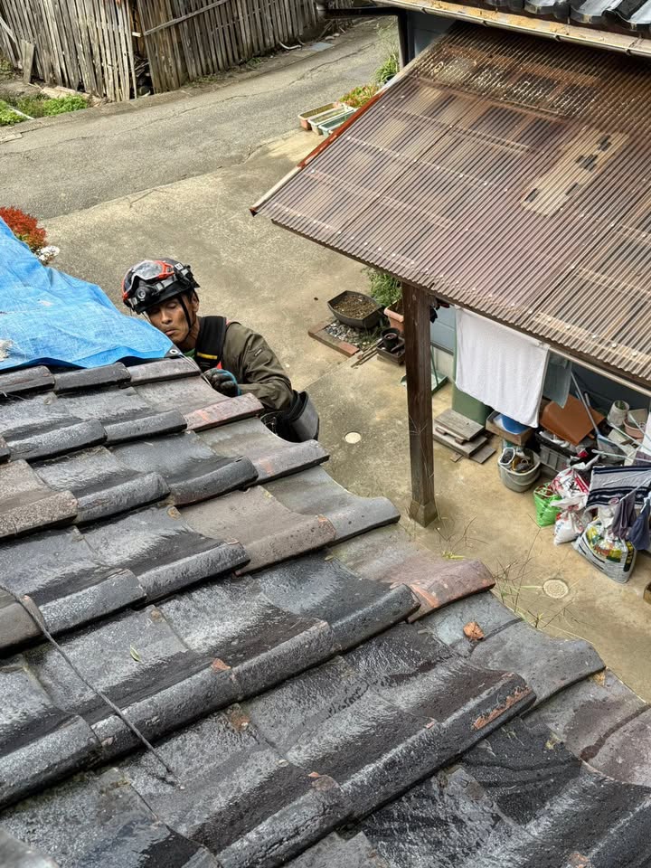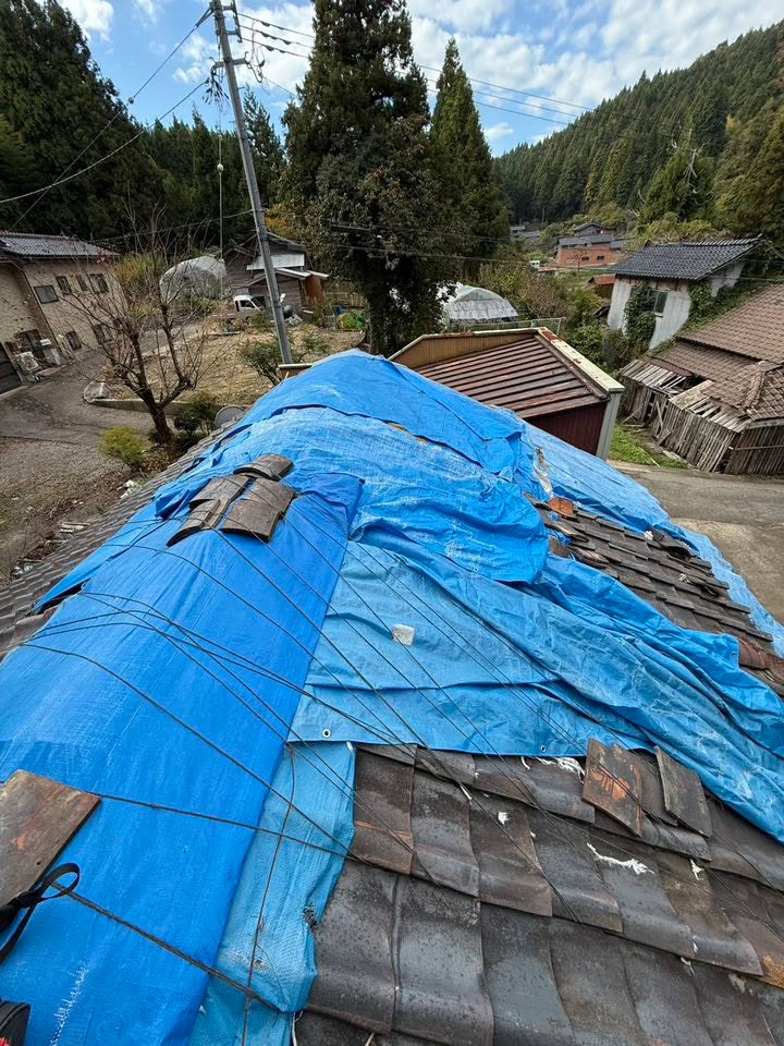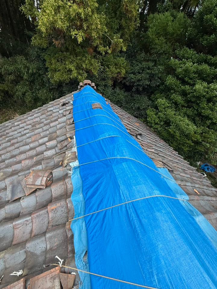 震災で壊れてしまったので業者さんに応急処置を依頼したのですが、時間が経つとともに、シートは劣化してきており、瓦が再落下もしていました。
