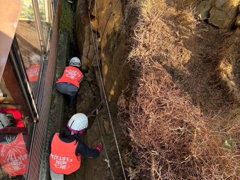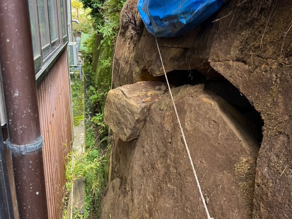 地震の影響で壁が落ちそうになっていて危ないので撤去して欲しい。と言うお方と、家の脇の斜面が崩落して自分達でブルーシートを掛けたが、隣人からブルーシートの色が気になる…と言われてしまった方の2件でした。