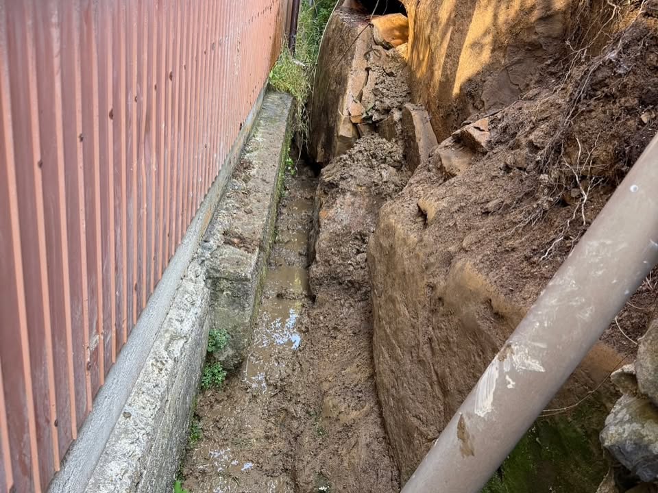 2件目のお宅は隣家との境目に配水路があったのですが、珪藻土が崩落して塞いでしまっていました。