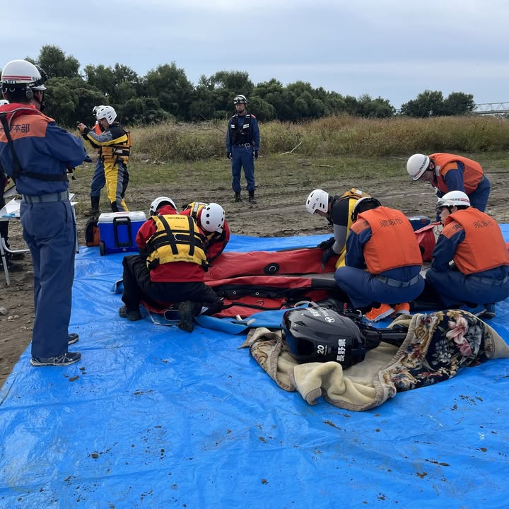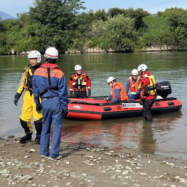 2025年10月3日、「日本笑顔プロジェクト」は、災害時の協定団体である須坂市消防本部救助隊の皆様と合同で、「救助用ボートおよび急流救助訓練」を行いました。