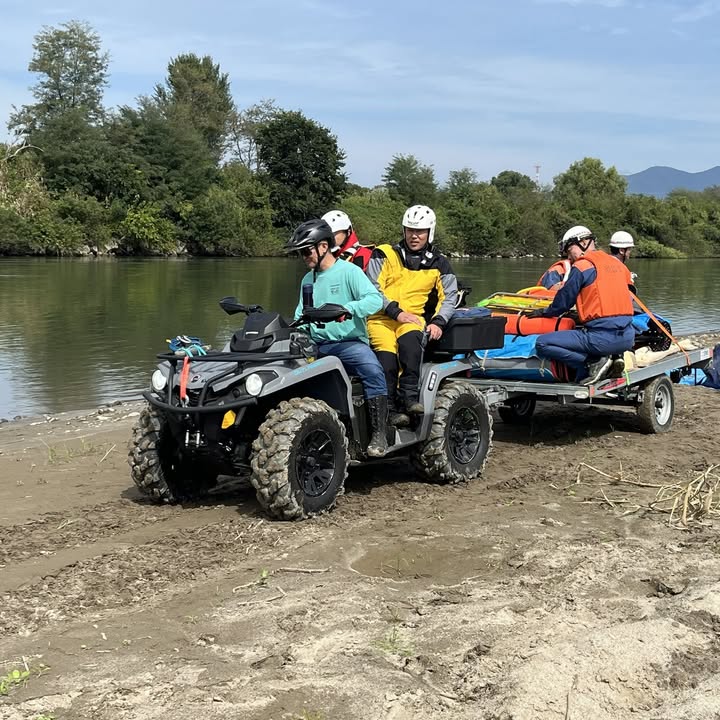 水害時、現場へのアクセスは困難を極めます。しかし、私たちのバギーがボートなどの重い資器材を迅速に運ぶことで、救助隊の皆さまがすぐに救助活動に入れる環境を作り出せることが確認できました。これは、「一刻も早く命を救う」というミッションを達成するために、私たちの機動力がどれほど重要かを改めて実感した瞬間でした。