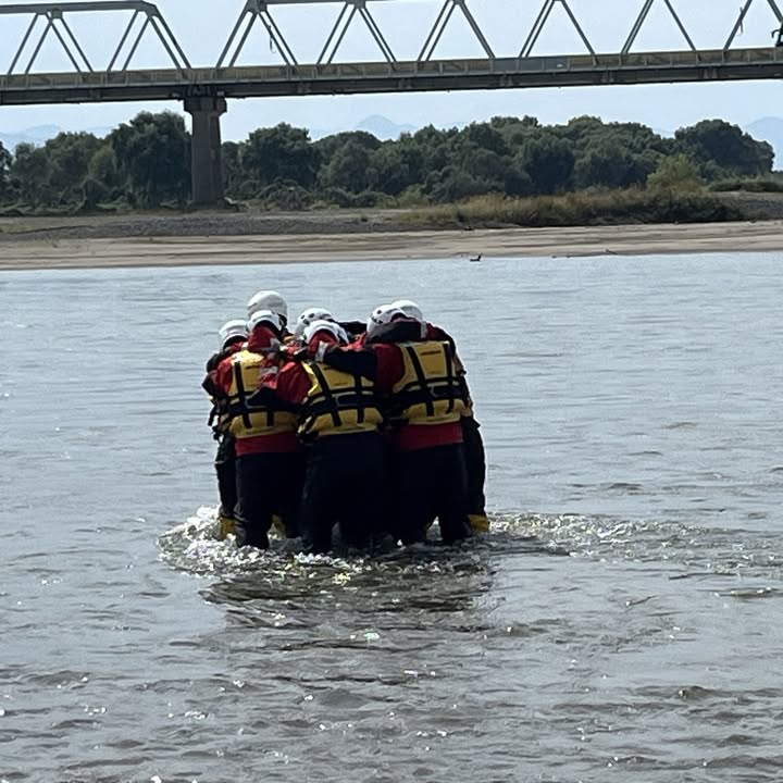 この訓練は、激しい流水域での救助活動要領を学ぶこと、そして何よりも、災害時に私たちが消防隊の皆さまとどれだけスムーズに連携できるかを確認するための貴重な機会となりました。