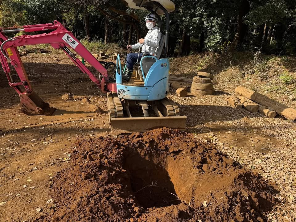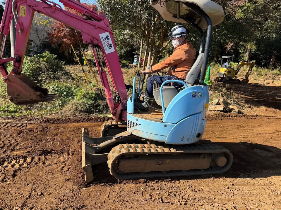 講習では、まず基本掘削から始まり、応用掘削、走行、整地を行い、そして大きな穴を堀り、埋め戻す総合整地を3回行いました。