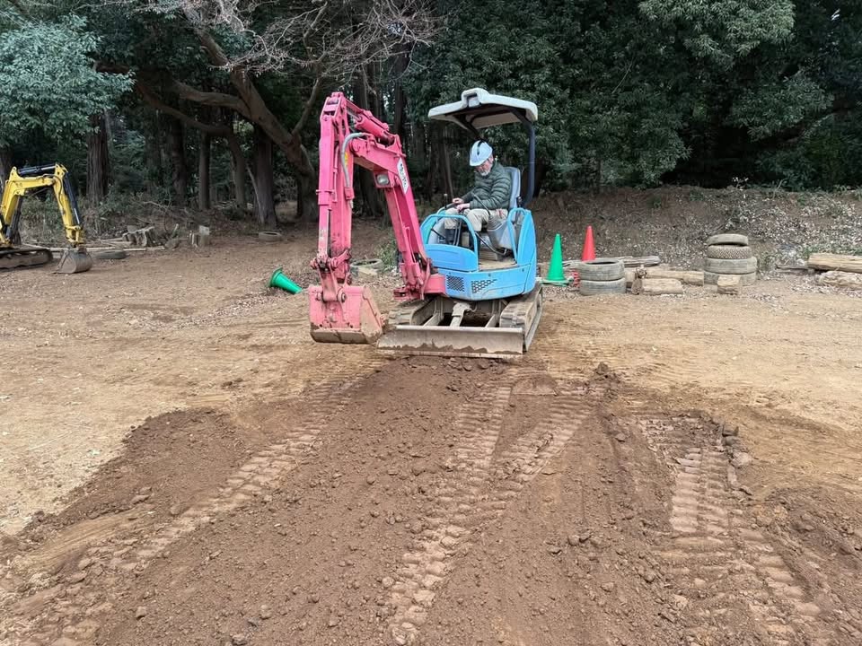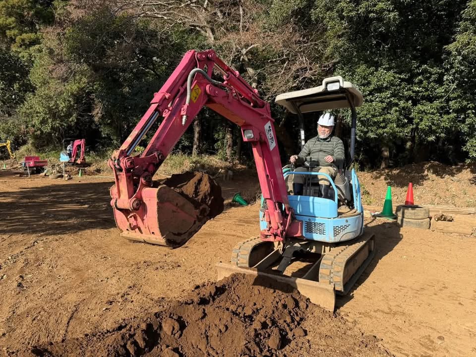 講習では、まず基本掘削から始まり、応用掘削、水平引き、走行、整地を行い、そして大きな穴を堀り、埋め戻す総合整地も行いました。