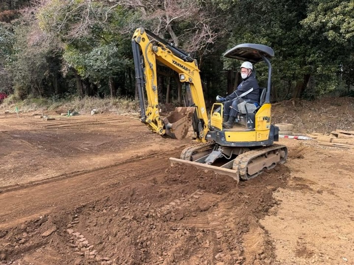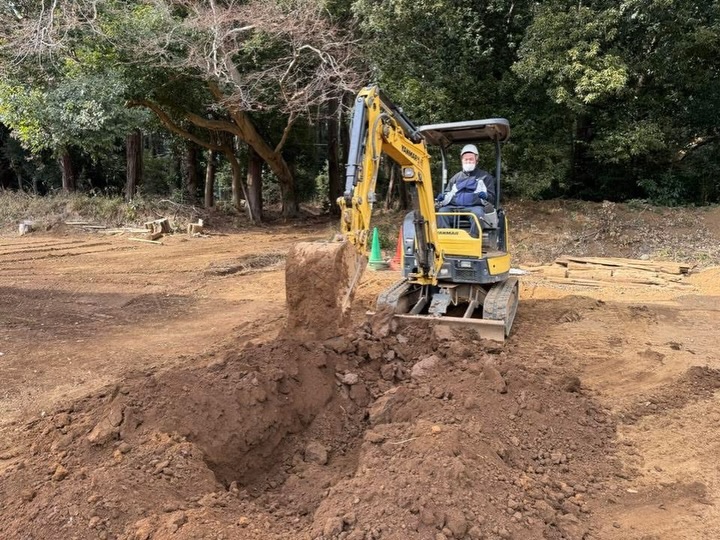 午後からは太陽が出てきて少しだけ気温も上がっていく中、走行、整地、そして大きな穴を掘って埋める総合整地も実施しました。