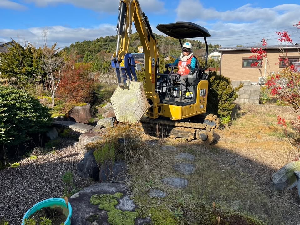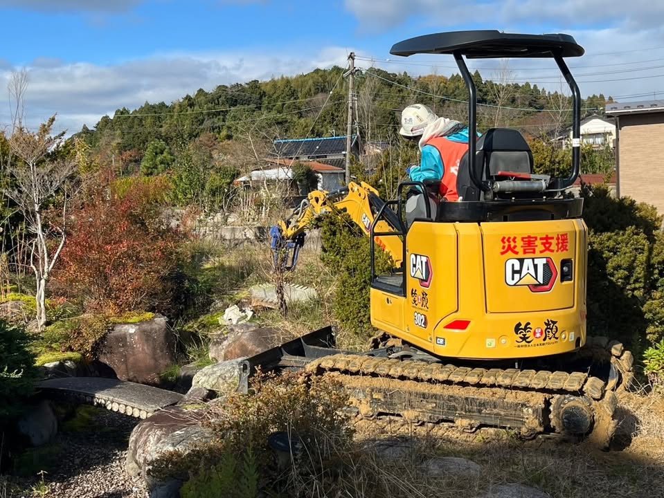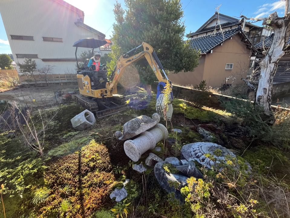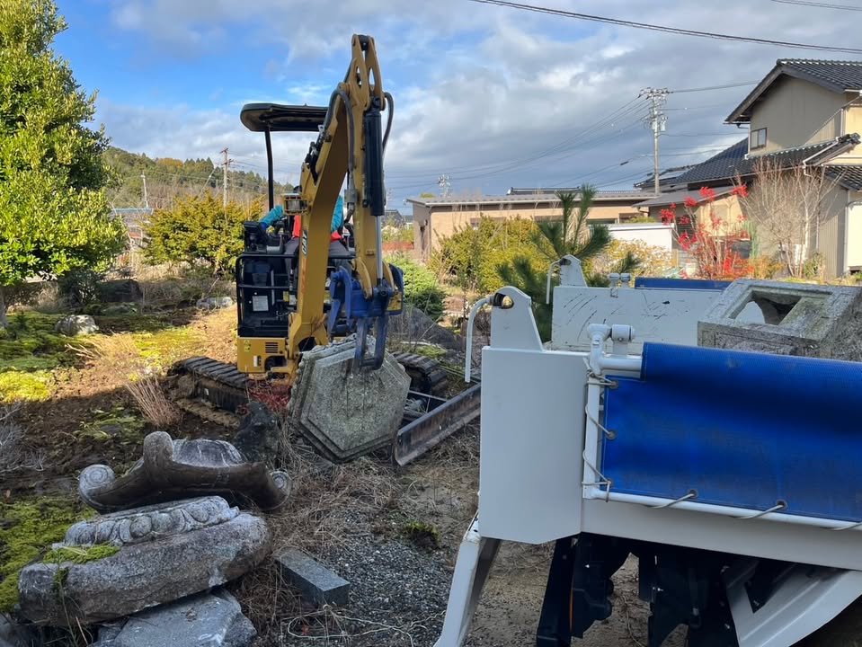 1グループは本部から持ってきた重機とダンプで大きな石でできた灯籠の撤去作業でした。