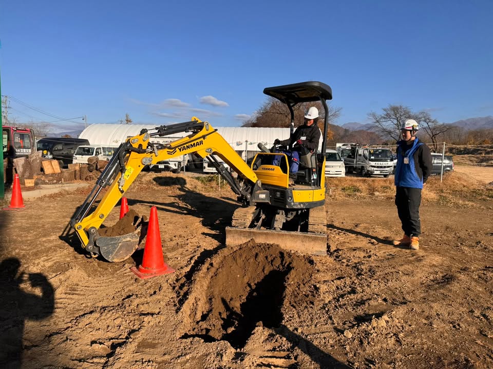第140回重機講習会が小布施で開催され、5名が参加されました。農業で役立てたい、資格を取りたい、防災に興味がある、目的は様々ですが、受講者の熱意で寒さも吹き飛ばす講習会となりました。掘削、走行、整地、サブスク検定メニューの体験を中心に進め、合間でホイールローダーや4輪バギーの体験試乗も実施しました。皆様の目的達成のために、今後も一緒に技術を磨いていきましょう。日本笑顔プロジェクトも応援致します。ご参加ありがとうございました。