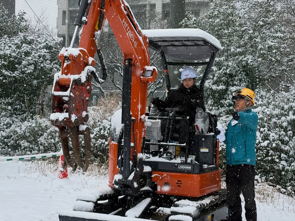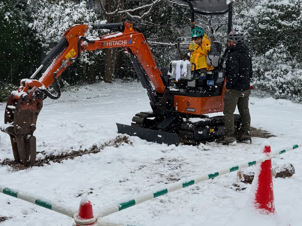 重機も楽しい、雪も楽しい。