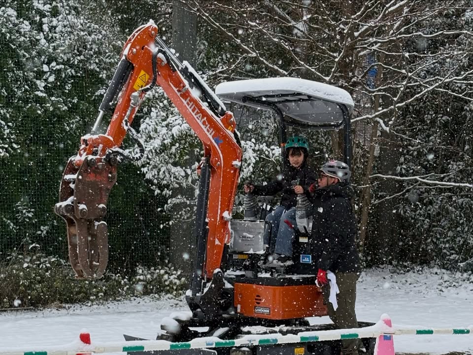 重機も楽しい、雪も楽しい。