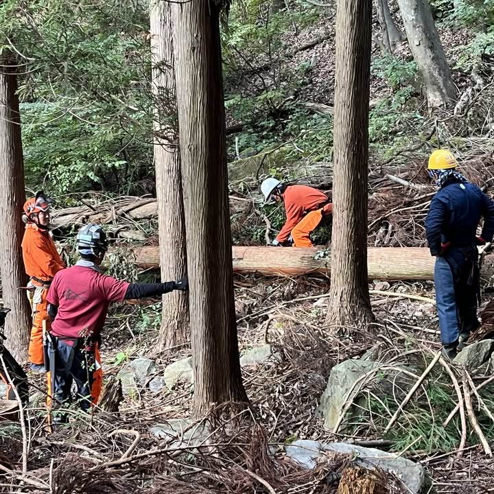 難易度の高い伐倒となりましたが、皆様のチームワークと集中力により、見事に、そして無事に倒し切ることができました。この瞬間は、大きな達成感に包まれましたね!