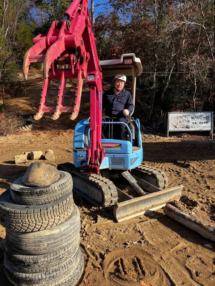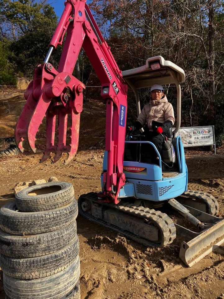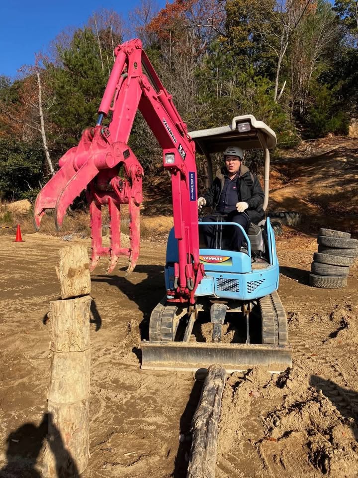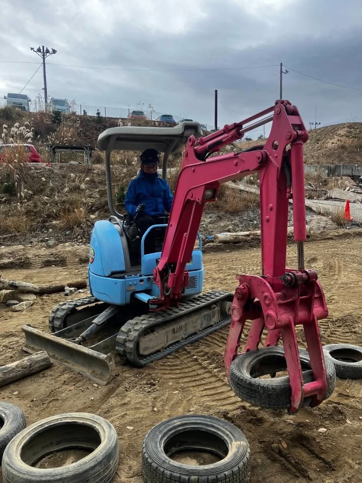 初めに、タイヤをつかんで移動させる事から始まり、そのタイヤを積んでその穴に小さなタイヤを入れる、たんころをつかむ、それを立てて積んでゆく、丸太を爪で移動させる等のメニューをこなされ、