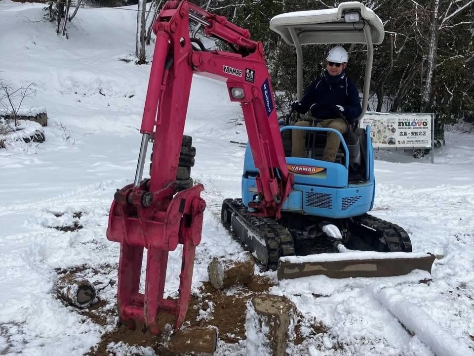 丸太を爪で移動させる等のメニューをこなされ、最後は丸太をトンボの様にして整地するところまで体験して頂きました。