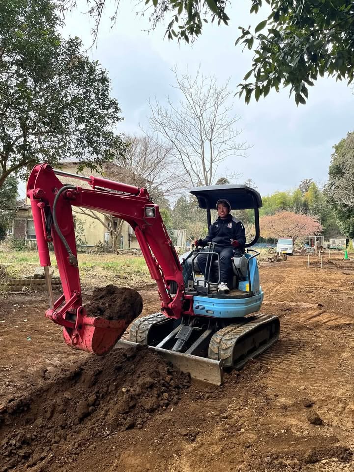 さて、講習では、まず基本掘削から始まり、応用掘削、水平引き、基本走行、整地を行い、そして大きな穴を堀り、埋め戻す総合整地も行いました。さすが若者、飲み込みが早く、全てのカリキュラムをじっくり細かく指導を行いました。